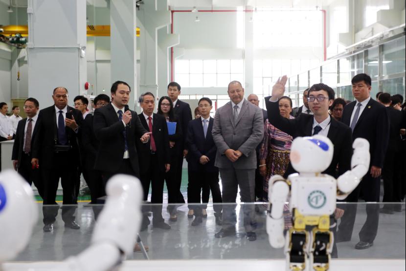 汤加王国国王参观太阳成集团tyc9728并观看员工操作机器人表演