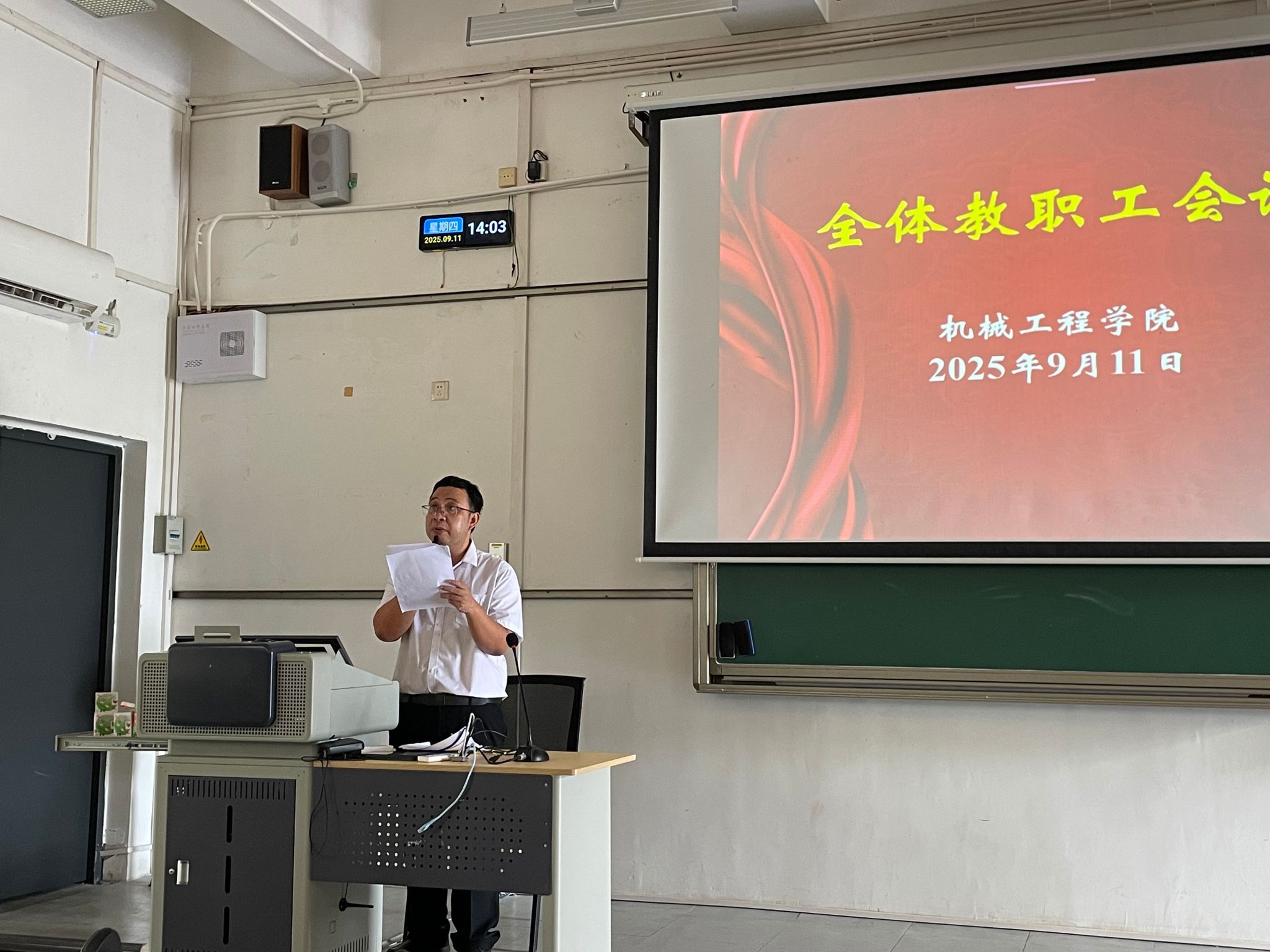 为进一步统一思想、凝聚共识,确保新学期各项工作有序、高效开展,2025年9月11日,太阳成集团tyc9728在教学楼6E207教室召开了新学期全体教职工大会。会议由公司副经理龙建宇主持,全体教职工参加了会议。