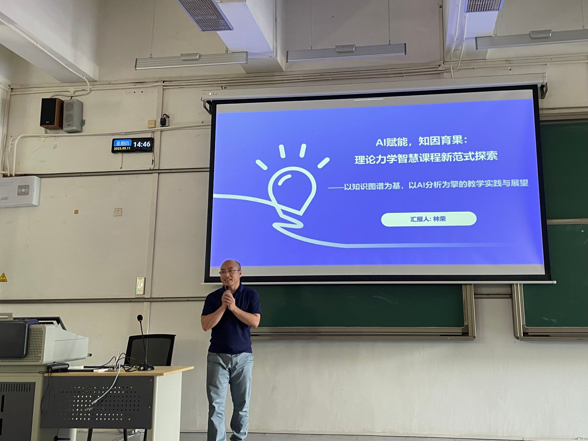 会议特邀林荣博士就其所主持的校级示范性智慧课程《理论力学》进行了经验分享。林博士结合课程建设历程,从智慧教学理念、在线资源建设、混合式教学模式创新、课程考核评价改革以及教学效果反馈等方面,详细介绍了该课程的实践探索与取得的显著成效。其深入浅出的讲解和丰富的案例为全院教师提供了宝贵的借鉴,激发了大家对深化教学改革、打造“金课”的热情与思考。