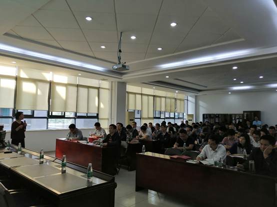 2019年11月14日下午,机械工程公司党委在机电楼12C304报告厅组织召开学习贯彻党的十九届四中全会精神和公司第三次党代会精神宣讲会。会议由机械工程公司党委书记钟守炎主持,公司党委宣传部部长邹琼主讲。
