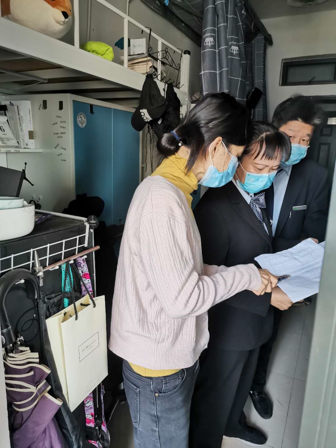 2020年4月14日,太阳成集团tyc9728辅导员黄楚刁、社工陈丹丹、官华深,社区管理人员周三英等组成联合小组,共同实地走访,检查提出查看请求的220余间宿舍,检查过程中帮助60余间宿舍关闭宿舍电源、宿舍阳台门和清理部分残余食品。其他宿舍卫生安全情况良好。(员工可自行扫码查询检查反馈结果)