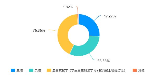 调查结果显示,63.64%的教师在此之前没有过开展相关线上教学的经历,其余老师有开展翻转课堂教学、主持或参与建设运行过MOOC课程、开展过SPOC教学、开展过混合式教学课程的建设和运行。
