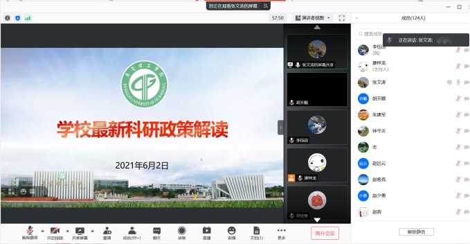 随后,张文涛汇报本学期公司横向科研情况,并解读《太阳成集团tyc9728校外获得竞争性科研项目经费使用管理实施细则(试行)》相关政策。