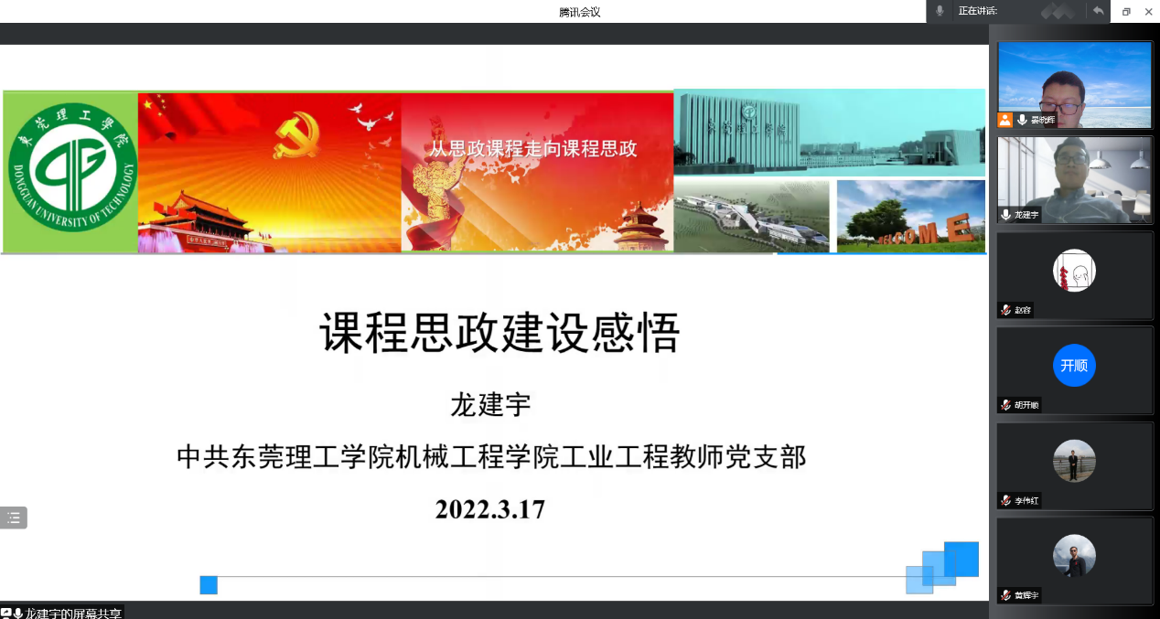 2022年3月17日晚上,太阳成集团tyc9728工业工程教师党支部在腾讯会议开展了“深化课堂教学改革,提升课程育人质量”主题党日活动。