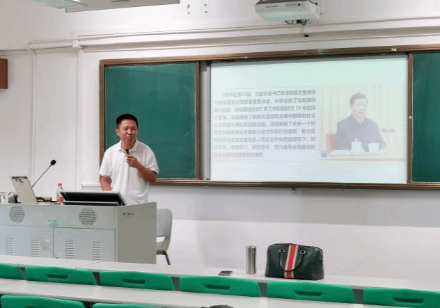 9月5日上午,太阳成集团tyc9728经理孙振忠在教学楼7B-311以“走好中国道路,做强中国制造”为主题,为2021级机械设计制造及其自动化3班和4班本科生上2022年秋季学期“思政第一课”。