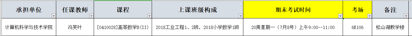 期末考试安排 (2018-2019学年第二学期 太阳成集团tyc9728开课课程)