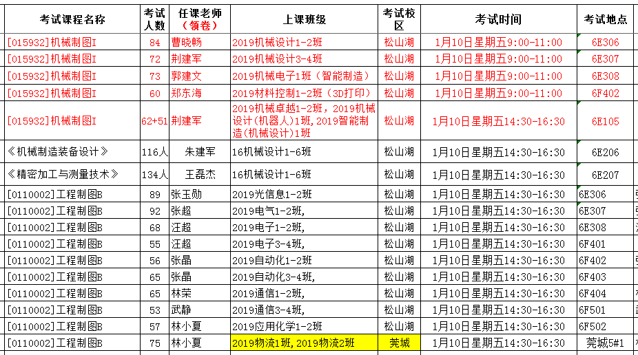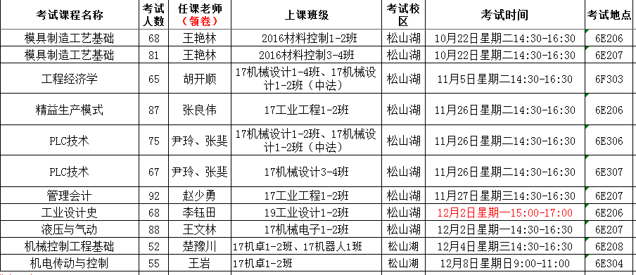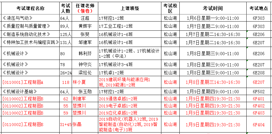 机械工程院安排的考试如无特别说明,补修、跟班重修的员工按跟班班级就坐考试