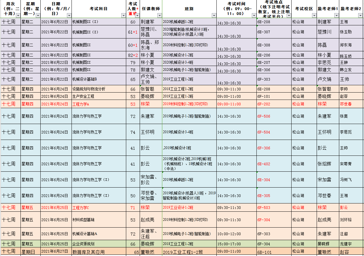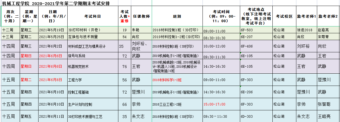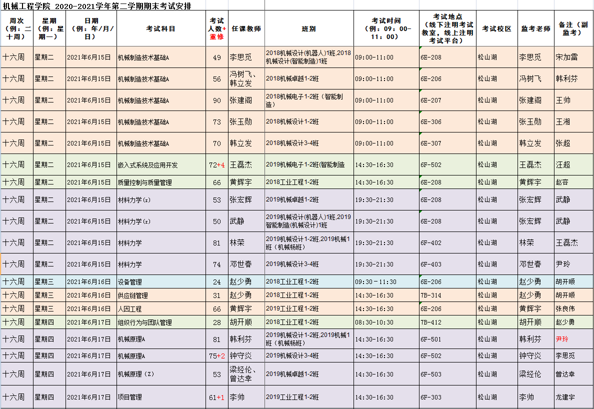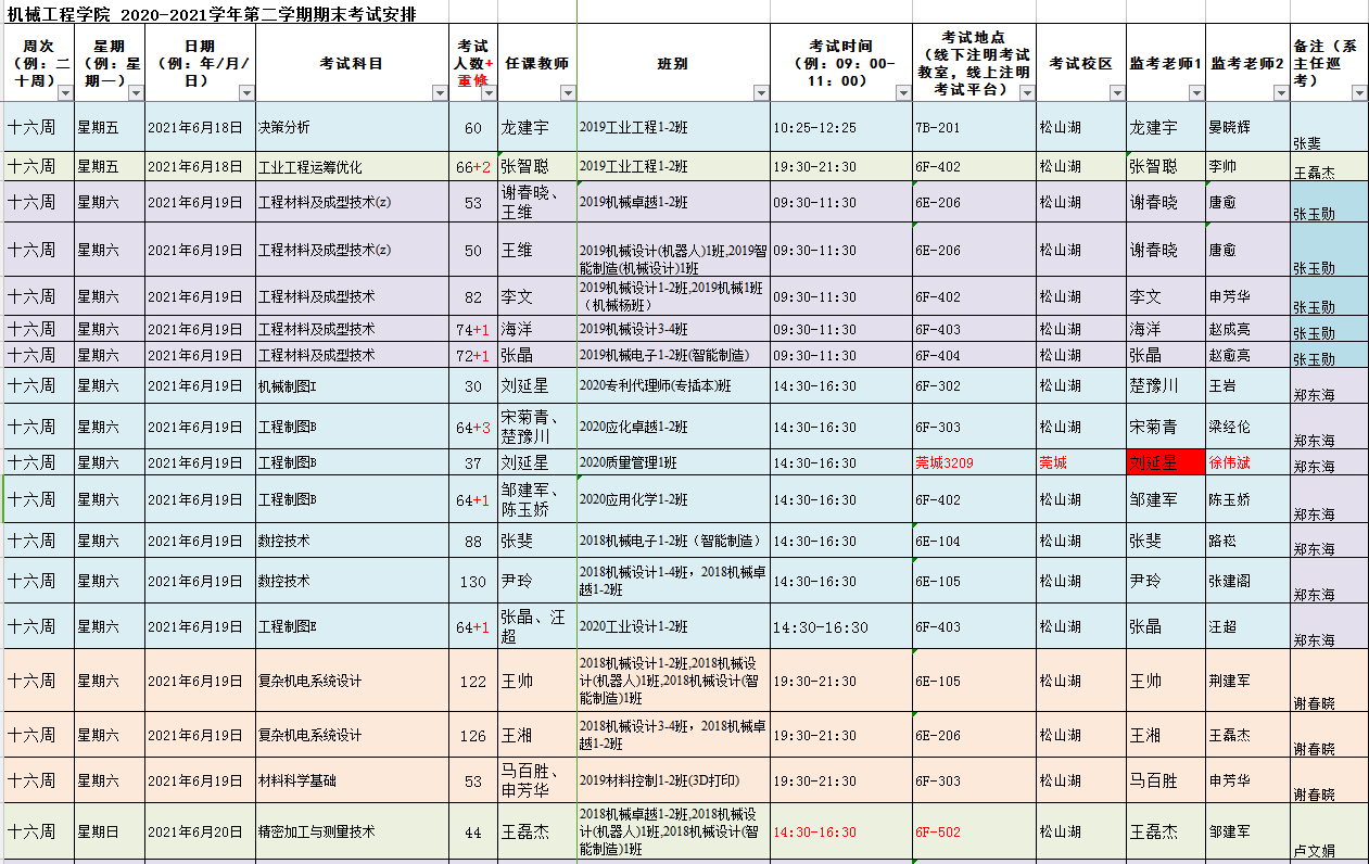 机械工程院安排的考试如无特别说明,补修、跟班重修的员工按跟班班级就坐考试
