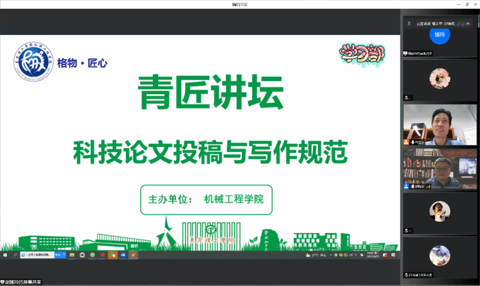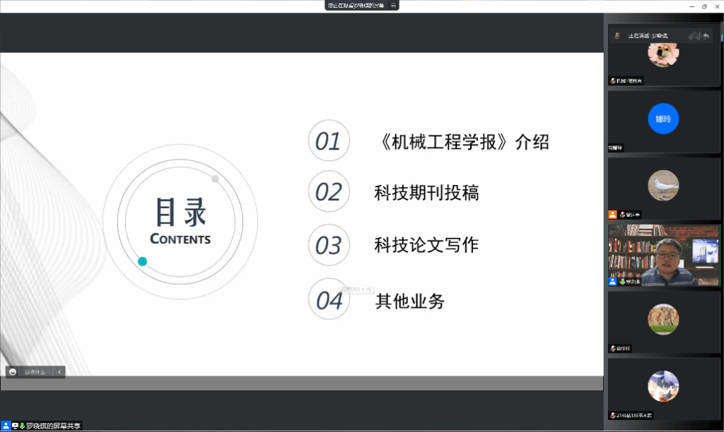 9月21日晚,太阳成集团tyc9728在线上召开了青匠讲坛-《科技论文投稿与写作规范》讲座,会议邀请了《机械工程学报》副编审、重大选题部部长,中国机械工程学会高级会员,IFToMM中国委员会委员,北京科学技术普及创作协会会员罗晓琪主讲。公司全体研究生和部分老师参加会议,会议由公司副经理曾达幸主持。