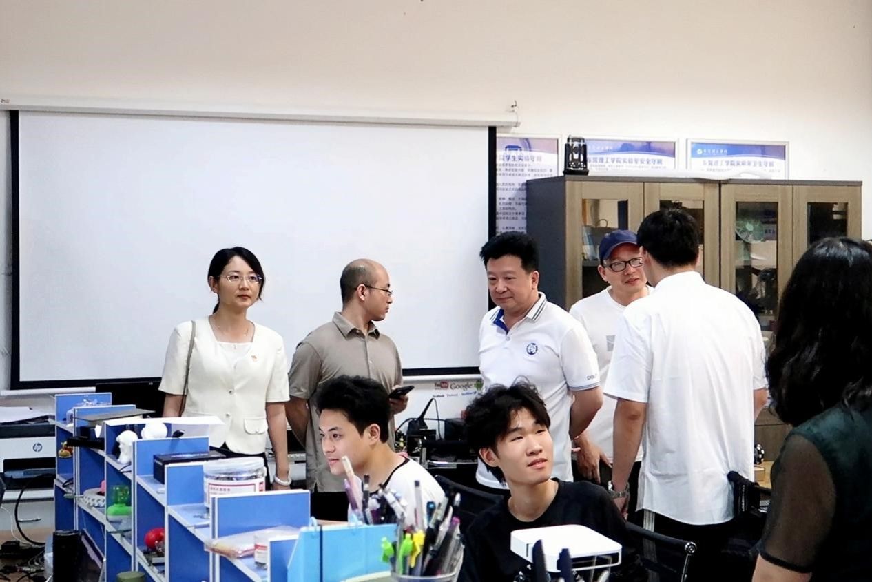 活动当天,智能制造教师党支部武静老师带领员工党员们参观包括AutoGo实验室、智能仿生机器人实验室、莞燕机器人实验室等在内的多个创新创业实验室,鼓励广大党员员工“早进课题组、早进实验室、早进研究团队”,引领党员员工积极参与创新创业实践活动,通过创新创业实践磨练本领,为老员工创新创业竞赛孵化贮备人才,同时进一步提升党员同学们的专业认同感与学习积极性。