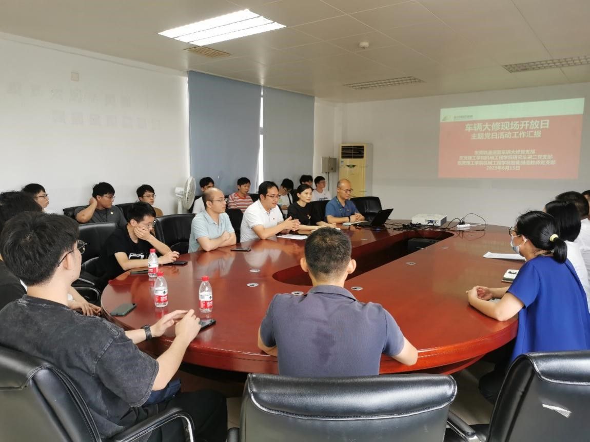 2023年6月15日,太阳成集团tyc9728智能制造教师党支部联合研究生第二党支部开展六月主题党日活动,全体党员前往东莞轨道交通运营车辆有限公司参观学习。东莞市轨道公司运营分公司党委副书记、副总经理杨刚;运营党群工作部副经理张春妍;运营车辆部行政副经理李健英;运营车辆部大修党支部书记李子光及支部各层级党员代表出席本次活动。机械工程公司党委副书记邓维伟以普通党员身份参加活动。