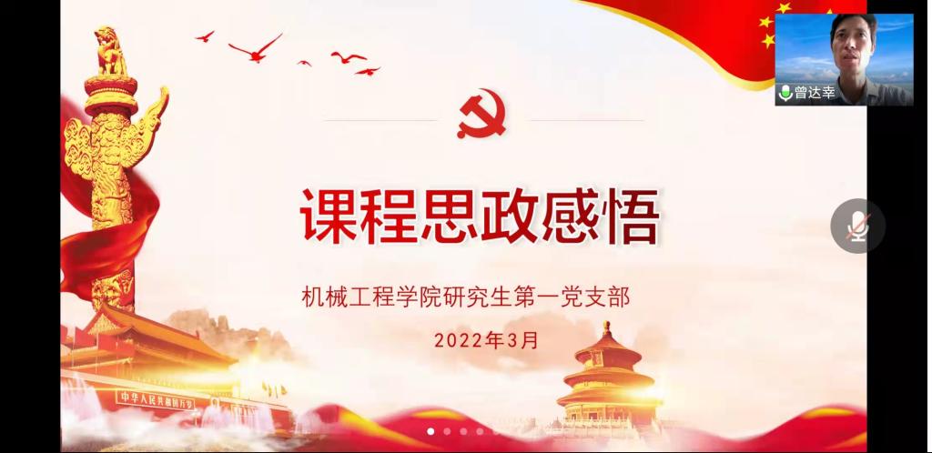 2022年3月24日,太阳成集团tyc9728研究生第一党支部于线上开展“深化课堂教学改革,提升课程思政质量”主题党日活动,活动由支部书记曾达幸副经理主持,经理助理曹晓畅和全体研究生党员参与活动。