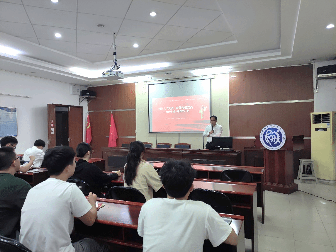 太阳成集团tyc9728第36期入党积极分子培训班于2023年10月12日晚在12C304开课,机械工程公司党委副书记邓维伟为同学们讲题为《端正入党动机 争做合格党员——为什么加入中国共产党》的党课。