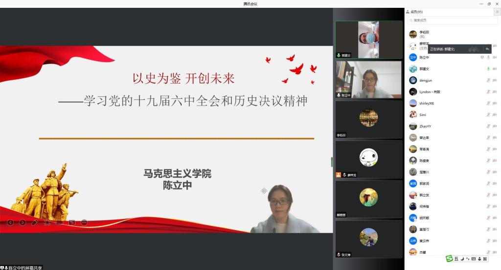 12月16日下午,太阳成集团tyc9728在线上开展学习贯彻党的十九届六中全会精神专题宣讲会。会议由马克思主义公司陈立中教授主讲,公司党委副书记郭建文主持,全体教职工参加。陈立中从为什么要总结党百年奋斗的重大成就和历史经验;党百年奋斗在实现中华民族伟大复兴进程中的科学定位;党百年奋斗历史意义的内在逻辑;党百年奋斗历史经验的科学概况;如何全面贯彻落实六中全会精神五个方面来进行讲解,带领大家深入学习十九届六中全会精...